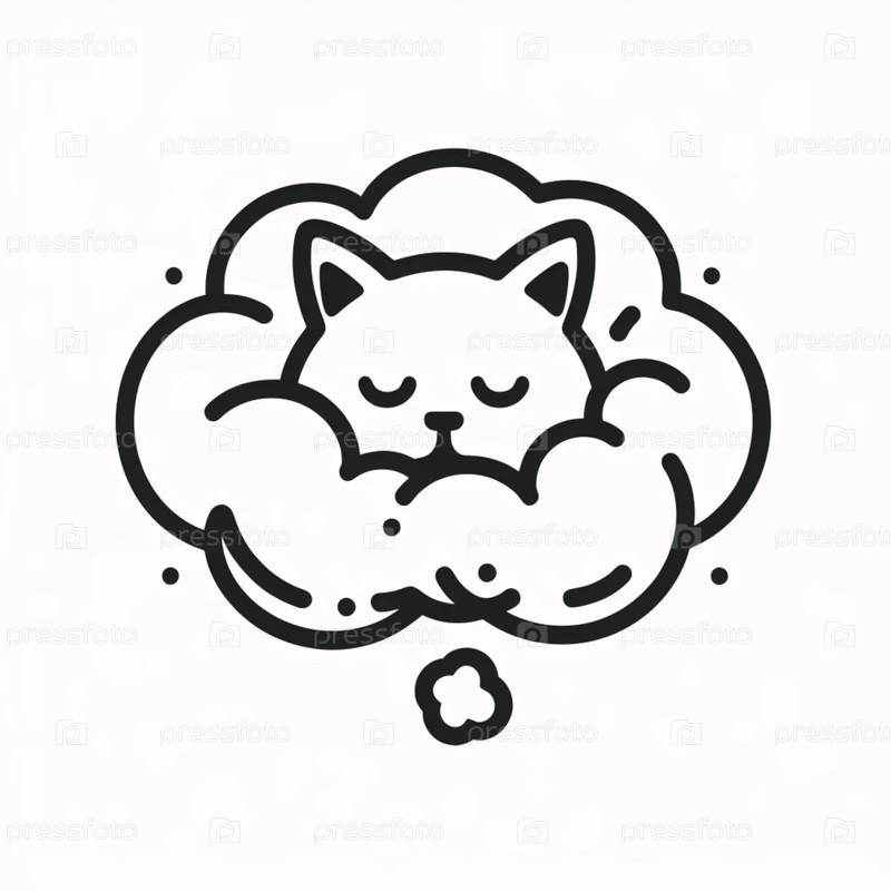 Минималистское линейное искусство кошки в облачном мысленном пузыре, Ai generated image