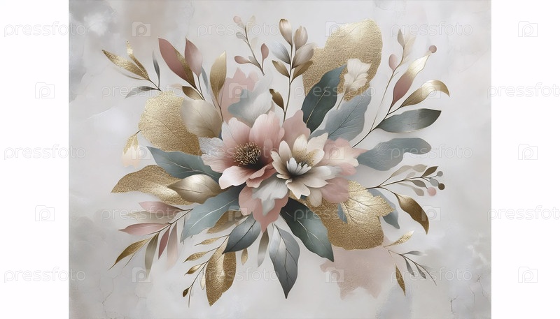 Абстрактный цветочный фон современное золото и пастельное ботаническое, Ai generated image