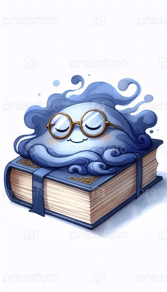 Акварельный арт-принт Sleepy Book, Ai создал изображение A