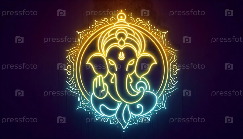 Господь Ганеша с неоновым светом, Ai generated image A