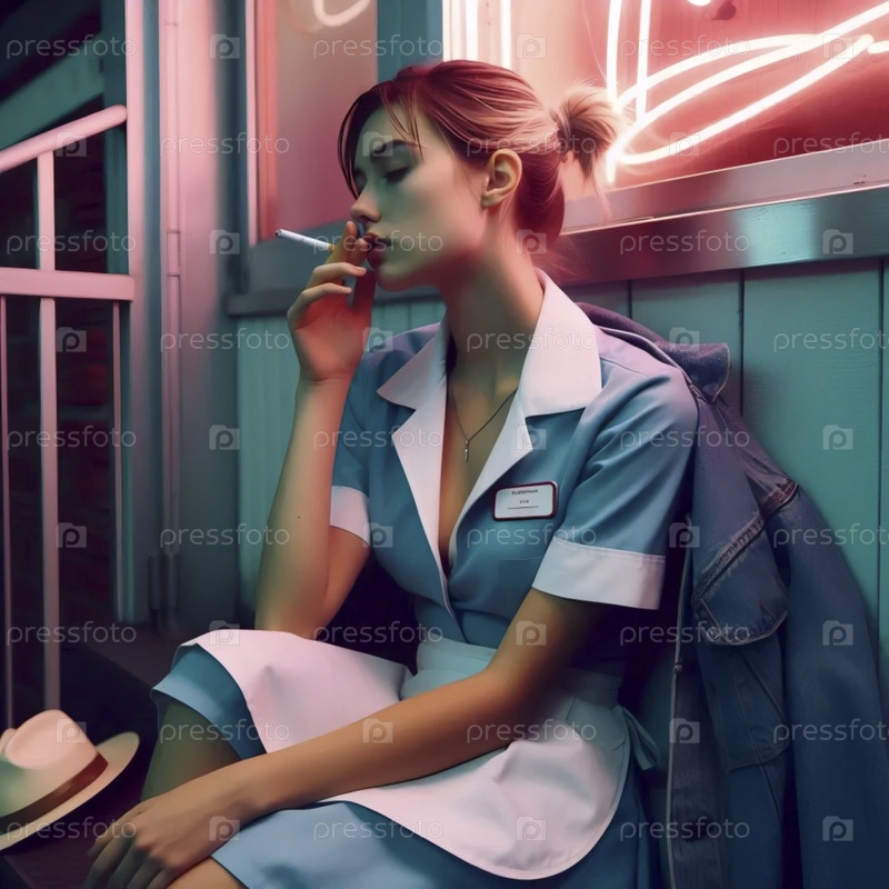 Официантка в ресторане на перерыве, Ai generated image