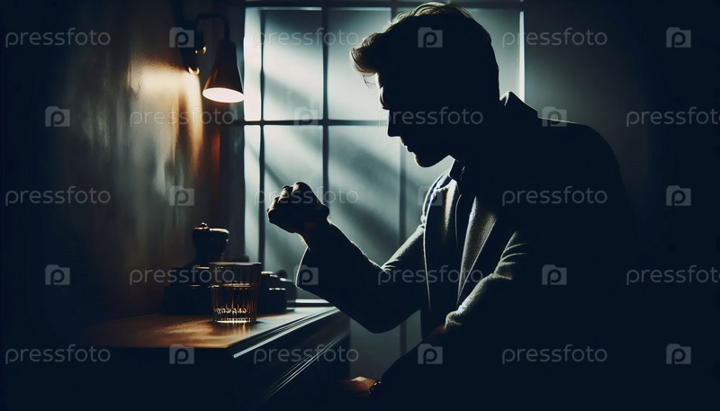 Более широкая сцена в стиле ноар с фигурой в силуэте, Ай создала образ
