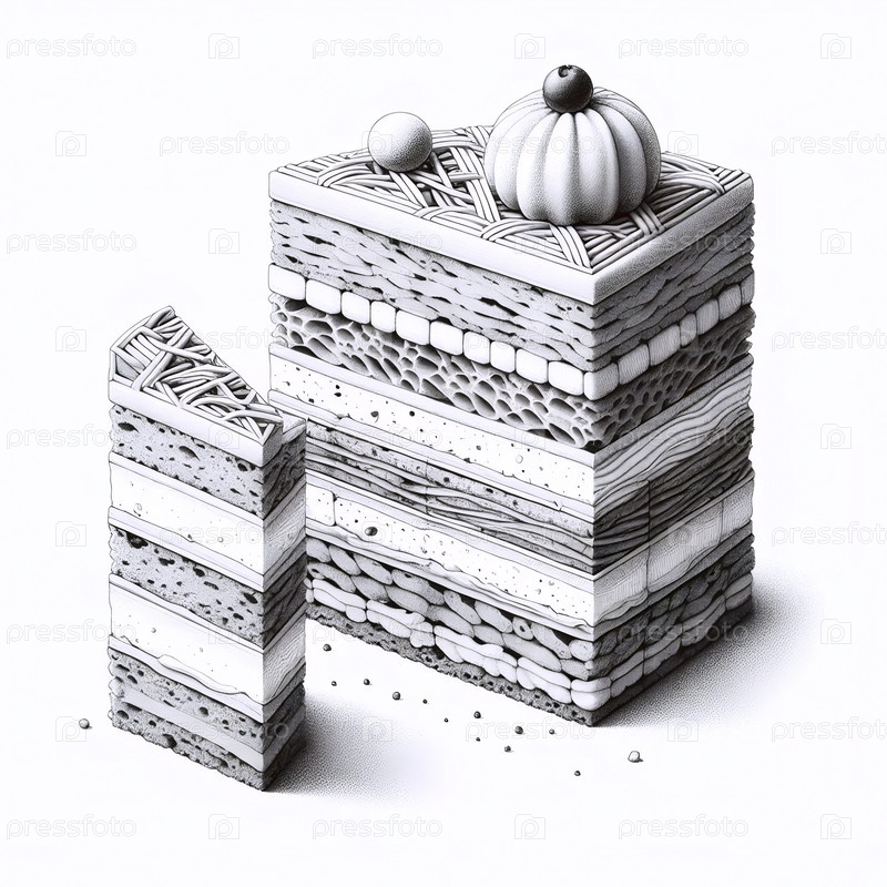 Exquisite Pastry ink Drawing An art print, Ai generated image Искусственный печатный рисунок с чернилами для вышивки пирогов
