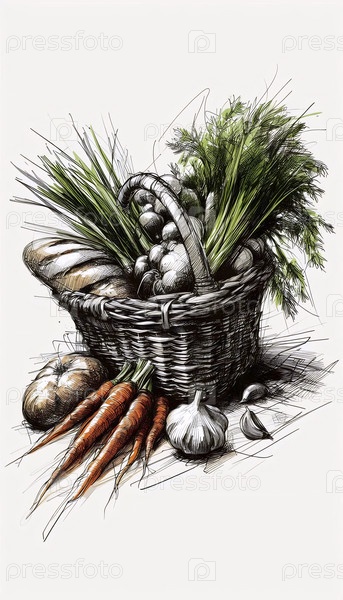 Рынок Корзина чернила рисование арт-принт, Ai generated image A