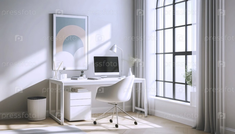 Яркое и прозрачное минималистическое рабочее пространство, Ai generated image A