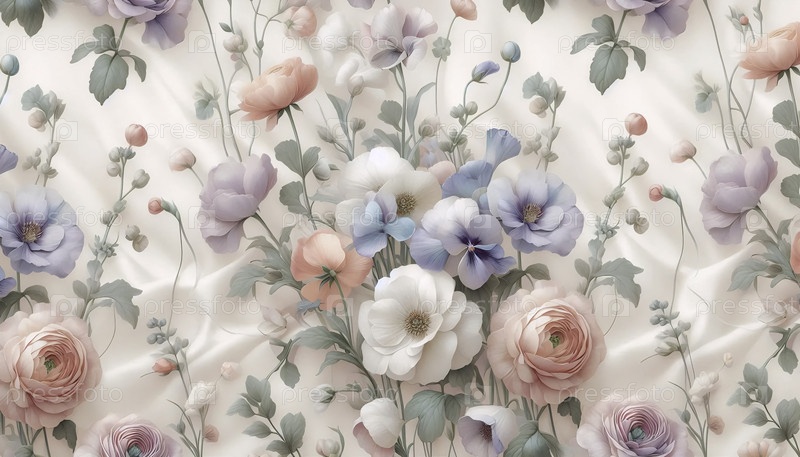 Элегантный цветочный пастельный бесшовный рисунок, Ai generated image