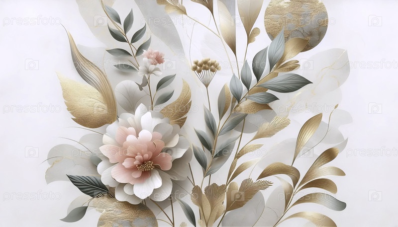Абстрактный цветочный фон современное золото и пастельное ботаническое, Ai generated image