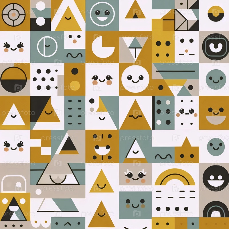 Геометрический шаблон кавайи с милыми формами лиц, Ai generated image