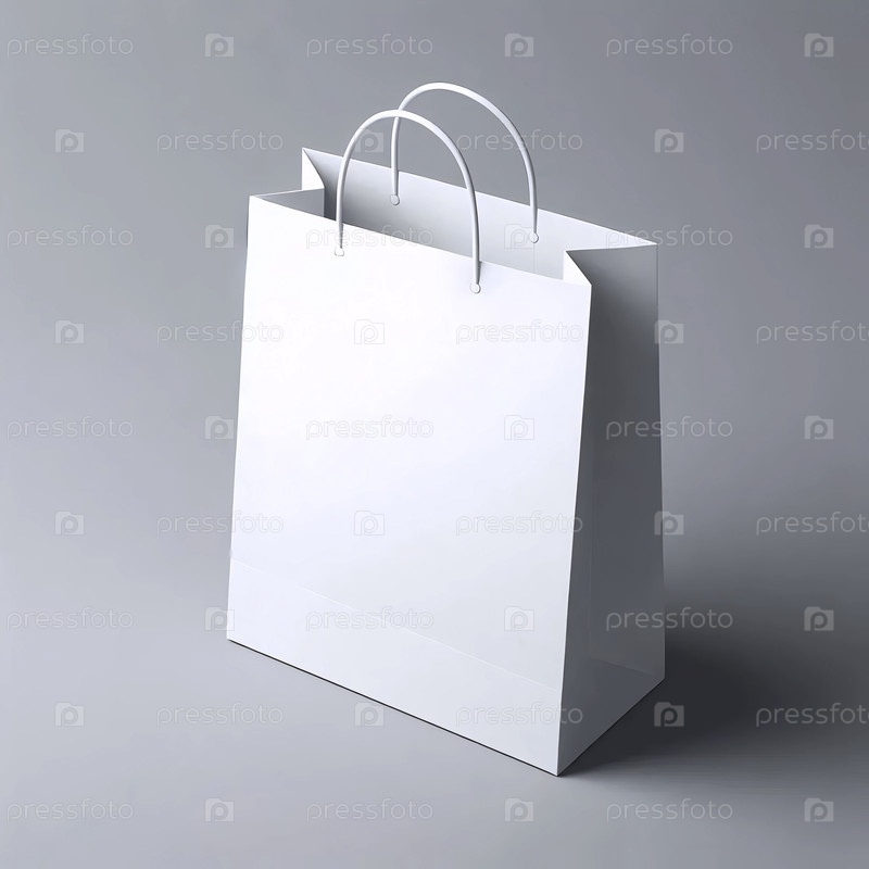 Пустой, плоский бумажный макет торговой сумки с вырезанными ручками, изолированный на сером фоне, Ai generated image