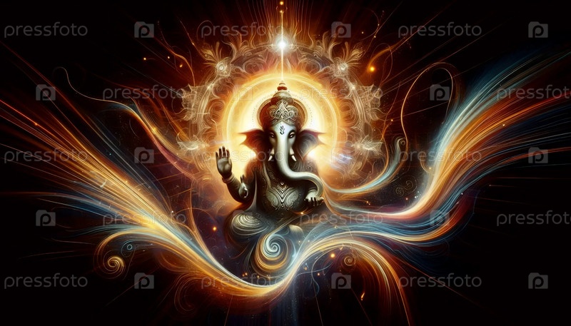 Господь Ганеша с энергетическими потоками, Ai generated image A