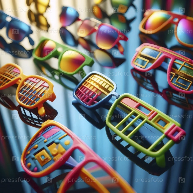 Красочные солнцезащитные очки в стиле 80-х, Ai generated image