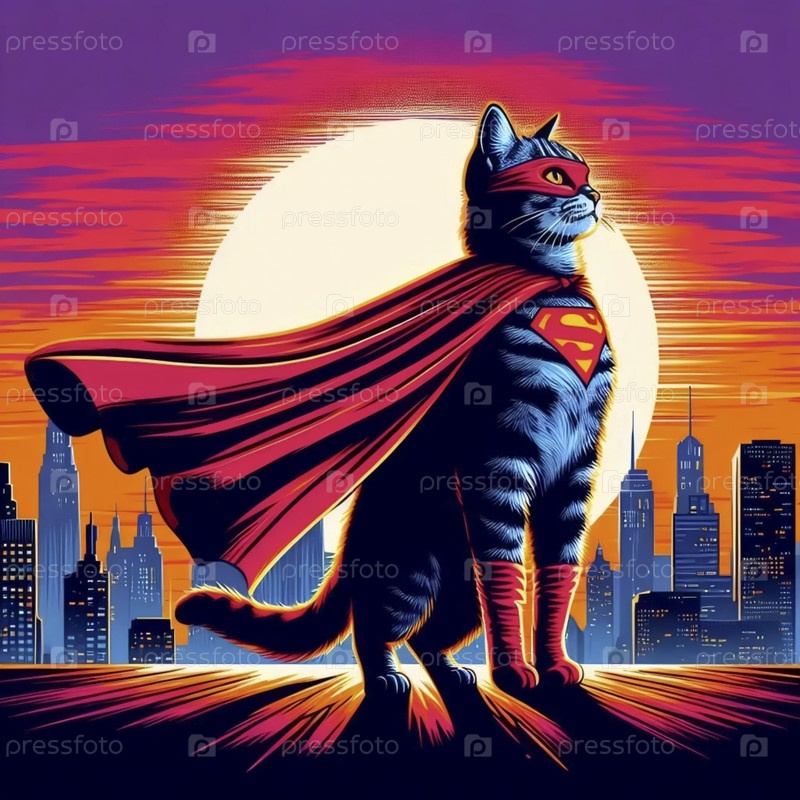 Супергерой-кошка в плато, афиша Ai generated image