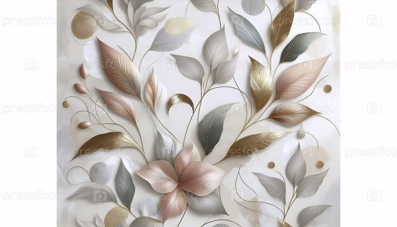 Абстрактный цветочный фон современное золото и пастельное ботаническое, Ai generated image