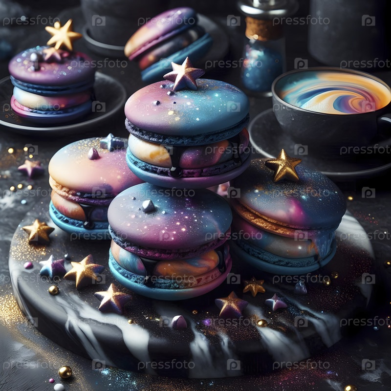 Галактические макароны с съедобными глянцевыми метеоритами, Ai created image