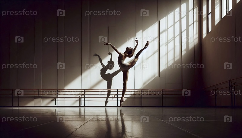 Идеальная танцевальная тень на стене тренировочного зала, Ai generated image