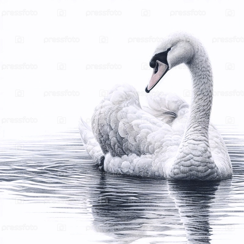 A serene swan ink drawing art print, Ai generated image (Серенный лебедь чернила рисование арт-принт, созданное изображением)