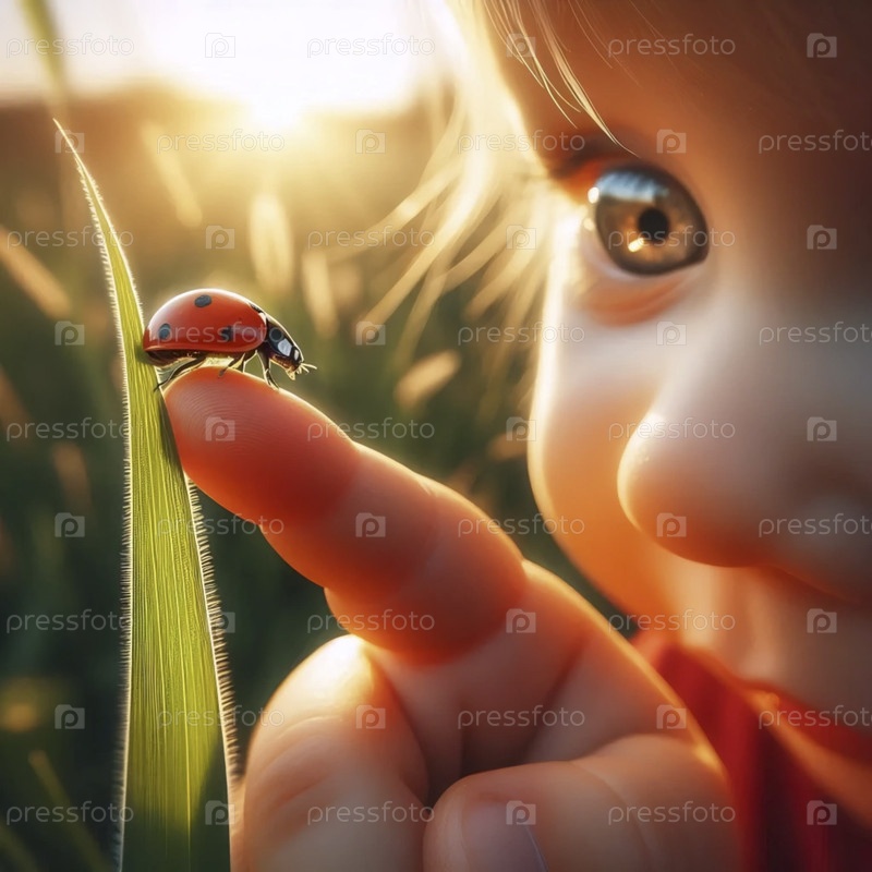 Первая встреча малыша с летающей бабочкой, Ai generated image