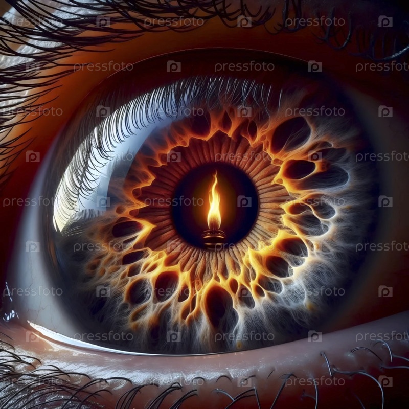 Экстремальное макро-отражание пламени в зрачку, Ai создал изображение