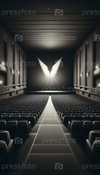 Широкий снимок из задней части пустой аудитории, подчеркивая масштаб и загадку, Ай создал образ