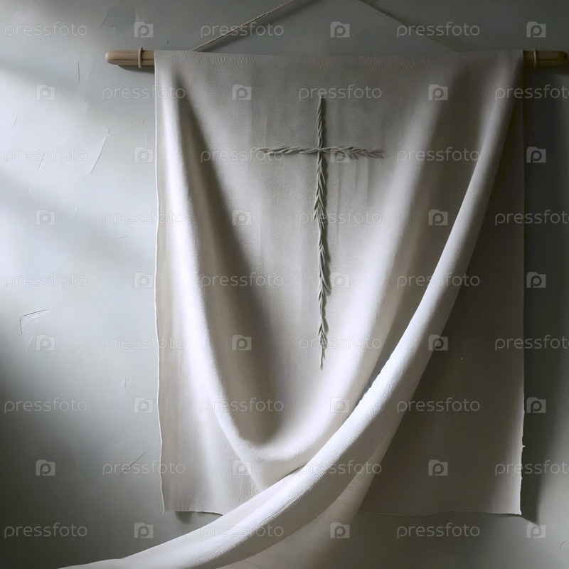 На стене из льняного дзен-бохо висит минималистический крест, Ai generated image