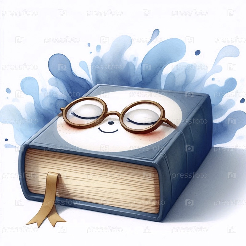 Акварельный арт-принт Sleepy Book, Ai создал изображение A