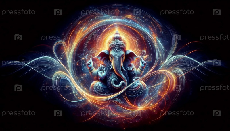 Господь Ганеша с энергетическими потоками, Ai generated image A