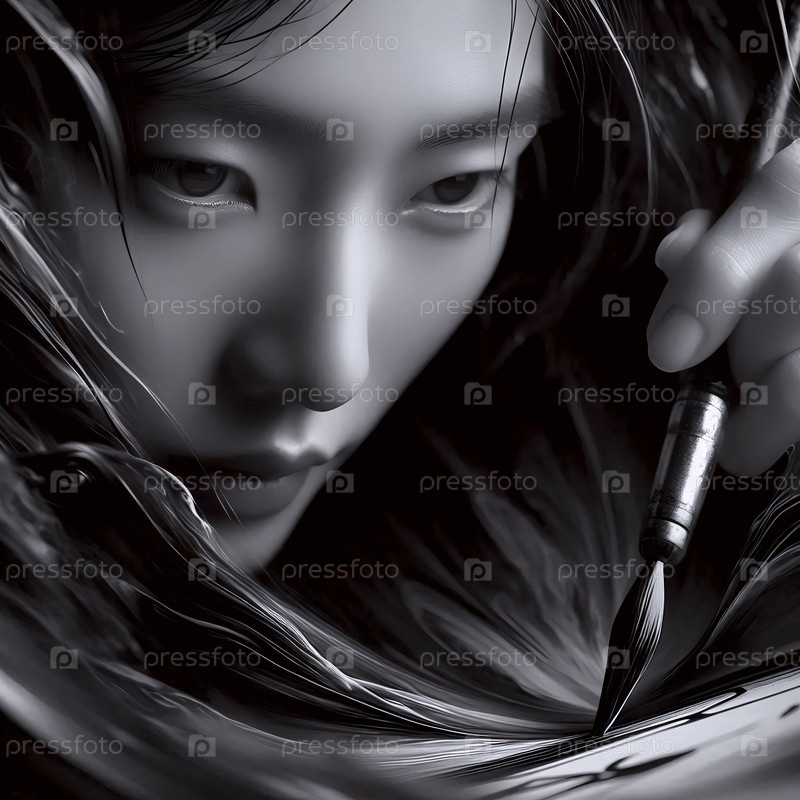 Тесный портрет, изолированный в движении каллиграфа, Ай создал образ