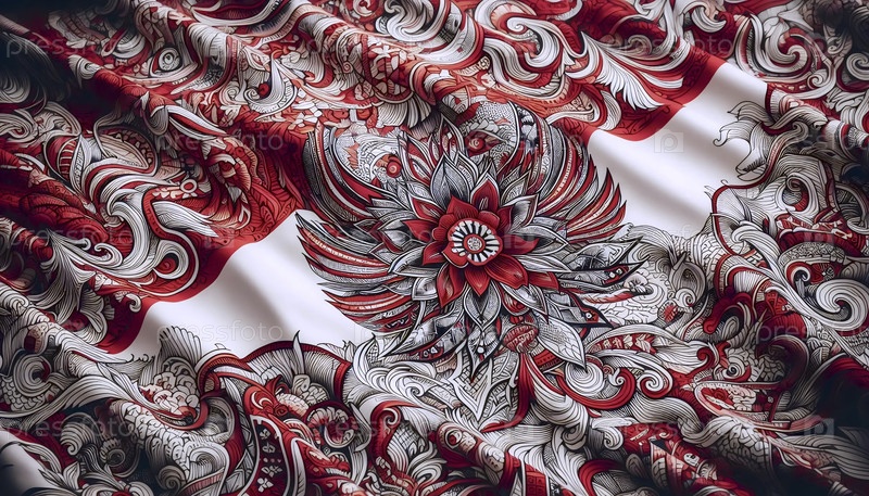 Индонезийский флаг в традиционном батикском искусстве, Ai generated image A