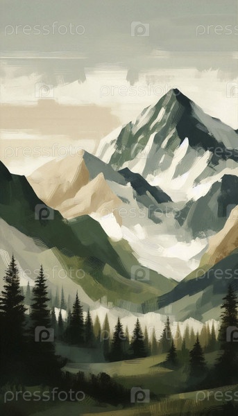 Текстированный художественный пейзаж горного ландшафта, Ai generated image