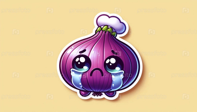 Милый стикер кавайи с плачущим луком, Ai generated image