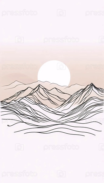 Минималистское линейное искусство горного хребта, Ai generated image