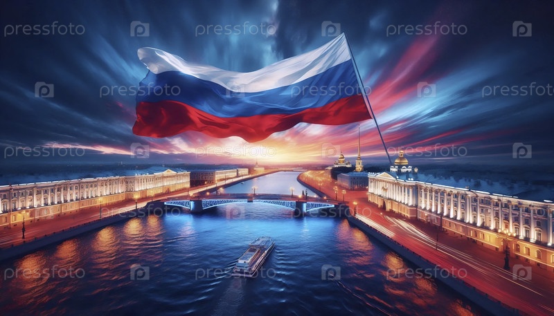 Российский флаг в Санкт-Петербурге Белые ночи, Ai generated image
