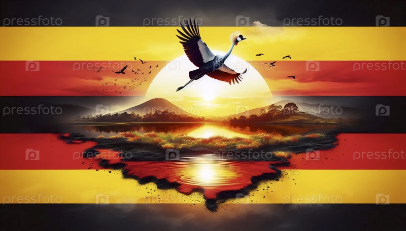 Флаг Уганды у истоков Нила и озера Виктория, Ai generated image