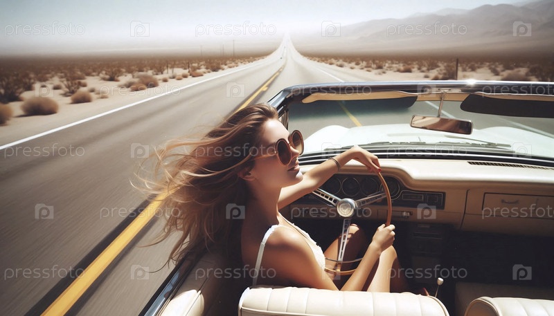 Пустынный драйв в ретро-кабриолет, Ai generated image