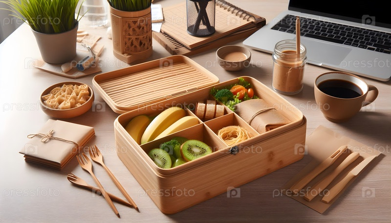 Бамбуковая волокна обеденный ящик, Ai-генерированное изображение