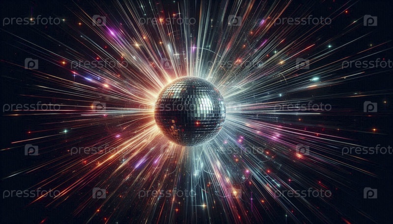 Сцена в ночном клубе с одним гигантским дискотечным шаром, отражающим красочные лазерные лучи во всех направлениях, Ai generated image