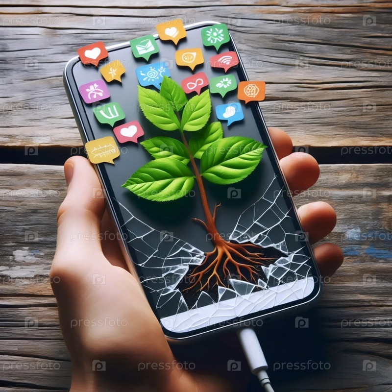 Цифровое возрождение - растет с телефона, Ai создает изображение