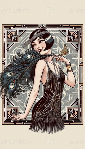 Пин-ап девушка, одетая как флапер 1920-х годов с перьями боев, Ai generated image