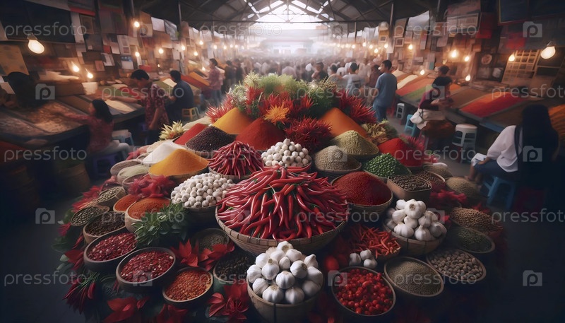 Индонезийский флаг в изобилии на рынке пряностей, Ai generated image