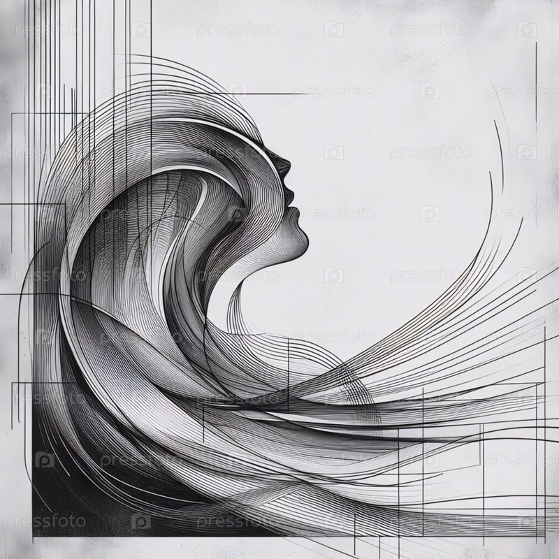 Минималистическое черно-белое абстрактное произведение искусства, Ai generated image