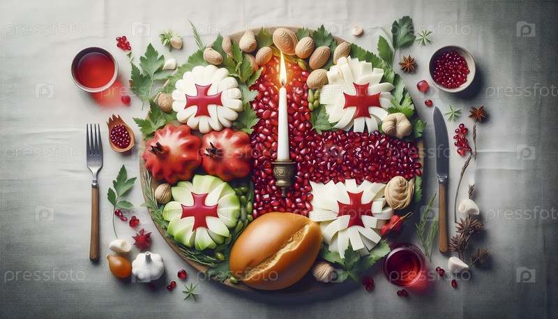 Грузинский флаг в традиции праздника и хлеба, Ai generated image
