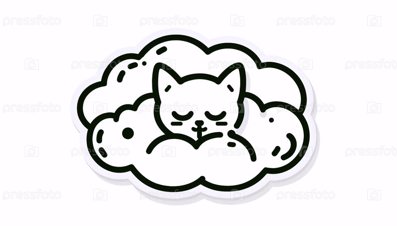 Минималистское линейное искусство кошки в облачном мысленном пузыре, Ai generated image