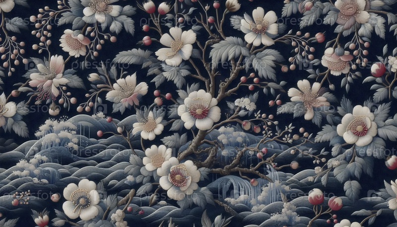 Японский шаблон вышивки с бесшовным дизайном, Ai generated image
