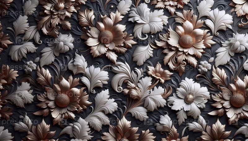 Белое золото розовое золото коричневое золото цветочное 3D-образ, Ai generated image