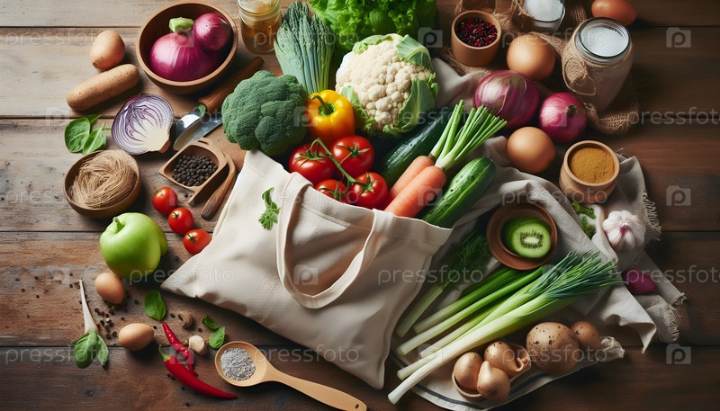 Сумка с органическими хлопковыми продуктами, изображение создано AI