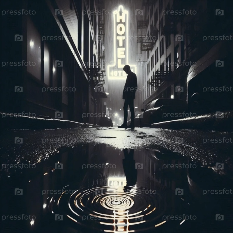 Черная печать с отражением лужи, Ai generated image