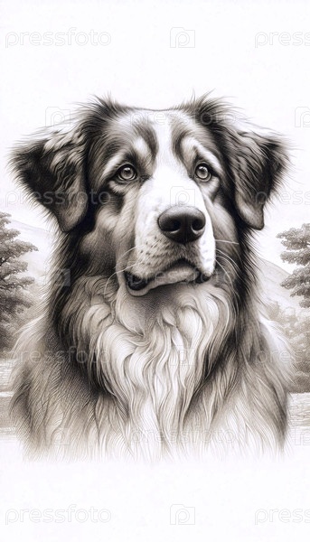 A loyal dog ink drawing art print, Ai generated image Искусственный печатный рисунок с чернилами верной собаки