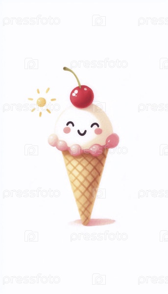 A Joyful Ice Cream акварельный художественный печат, Ai generated image