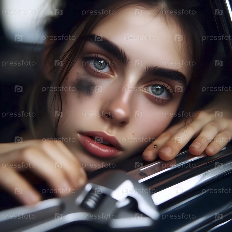 Ближайший план рук и лица девушки-механика, Ай создал изображение