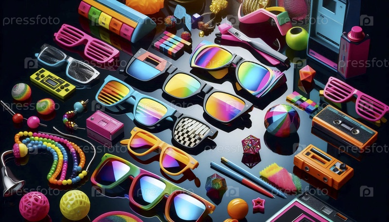 Красочные солнцезащитные очки в стиле 80-х, Ai generated image